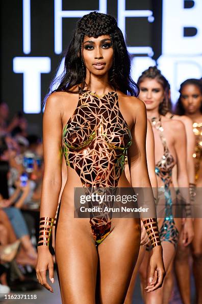 MIAMI BEACH, FLORIDA - JULY 15: Models walk the runway for BLACK TAPE PROJECT At Miami Swim Week Powered By Art Hearts Fashion Swim/Resort 2019/20 at Faena Forum on July 15, 2019 in Miami Beach, Florida. (Photo by Arun Nevader/Getty Images for Art Hearts Fashion)