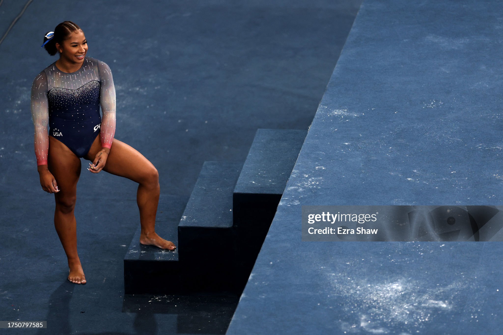 SANTIAGO, CHILE - OCTOBER 22: Jordan Chiles of Team United States waits to compete on the balance beam in the Women's Team Final at Parque Deportivo Estadio Nacional on Day 2 of the Santiago Pan Am Games 2023 on October 22, 2023 in Santiago, Chile. (Photo by Ezra Shaw/Getty Images)