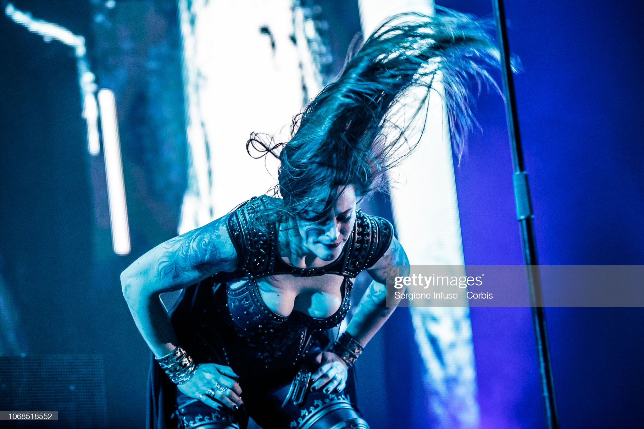 MILAN, ITALY - DECEMBER 04: Floor Jansen of Nightwish performs on stage at Mediolanum Forum on December 4, 2018 in Milan, Italy. (Photo by Sergione Infuso/Corbis via Getty Images)