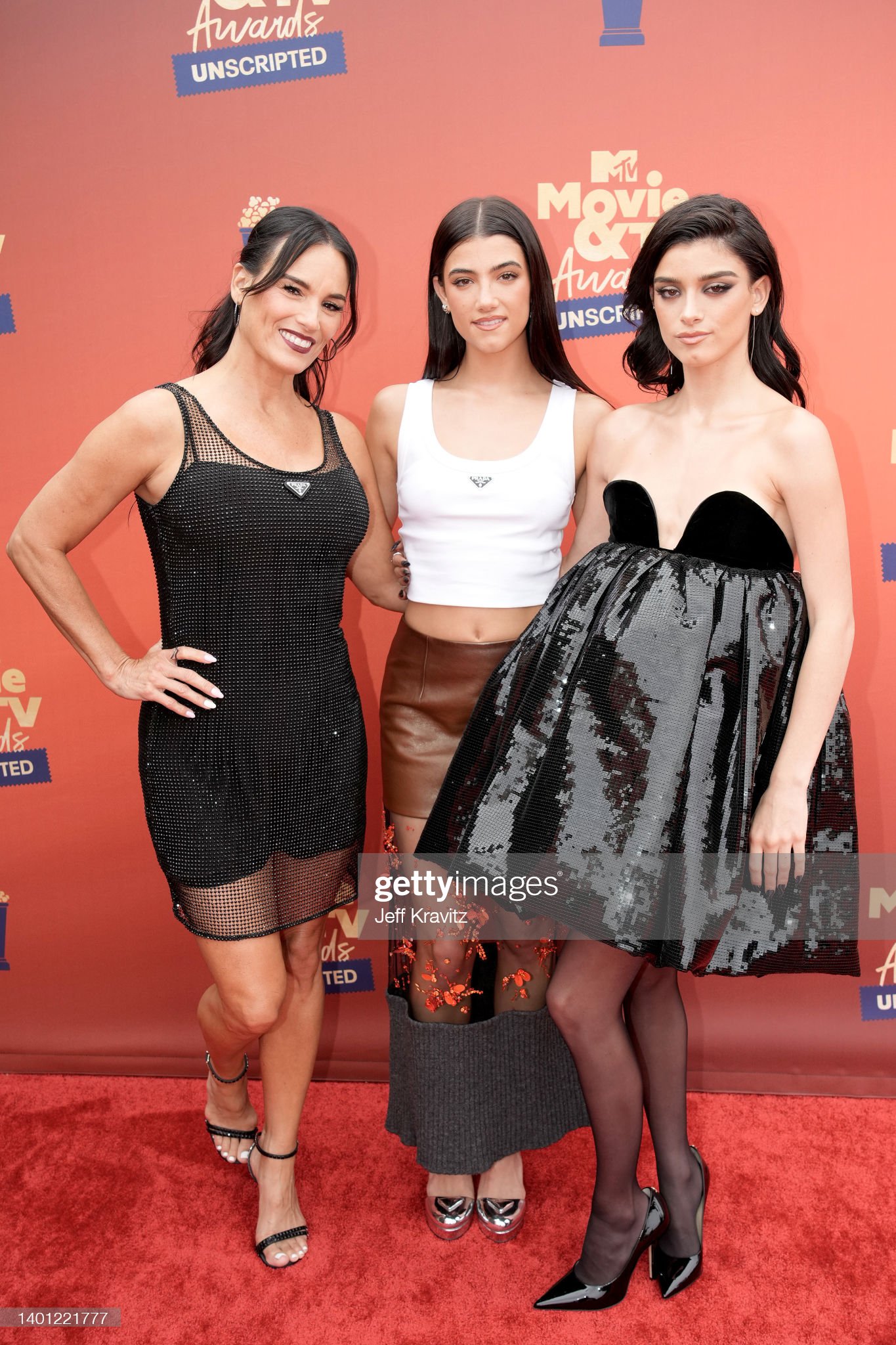 SANTA MONICA, CALIFORNIA: In this image released on June 5, (L-R) Heidi D'Amelio, Charli D?Amelio and Dixie D?amelio attend the 2022 MTV Movie & TV Awards: UNSCRIPTED at Barker Hangar in Santa Monica, California and broadcast on June 5, 2022. (Photo by Jeff Kravitz/Getty Images for MTV)
