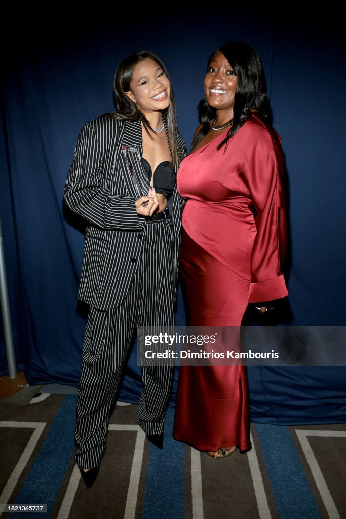 NEW YORK, NEW YORK - NOVEMBER 29: (L-R) Storm Reid and Charlene Masona attend the 2023 Footwear News Achievement Awards at Cipriani South Street on November 29, 2023 in New York City. (Photo by Dimitrios Kambouris/Footwear News via Getty Images)